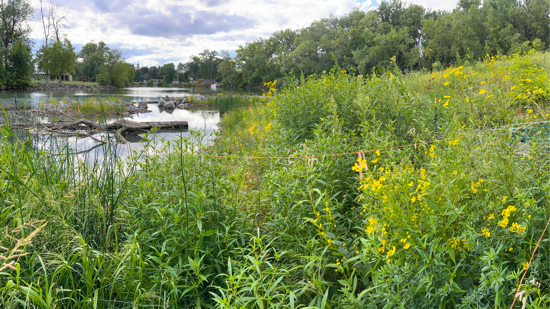 After project implementation and establishment, native plantings will span the land-water interface and provide a wealth of environmental services to this area. Reduced erosion, nutrient uptake, stormwater retention, and overhanging vegetation will improve water quality and help combat the algae blooms that are common in the lower reaches of Tonawanda Creek. In addition to water quality benefits, the project will also benefit the wildlife that rely on healthy shorelines to survive, such as freshwater mussels, warm water fish species, wading birds, waterfowl, beneficial insects, and pollinators.