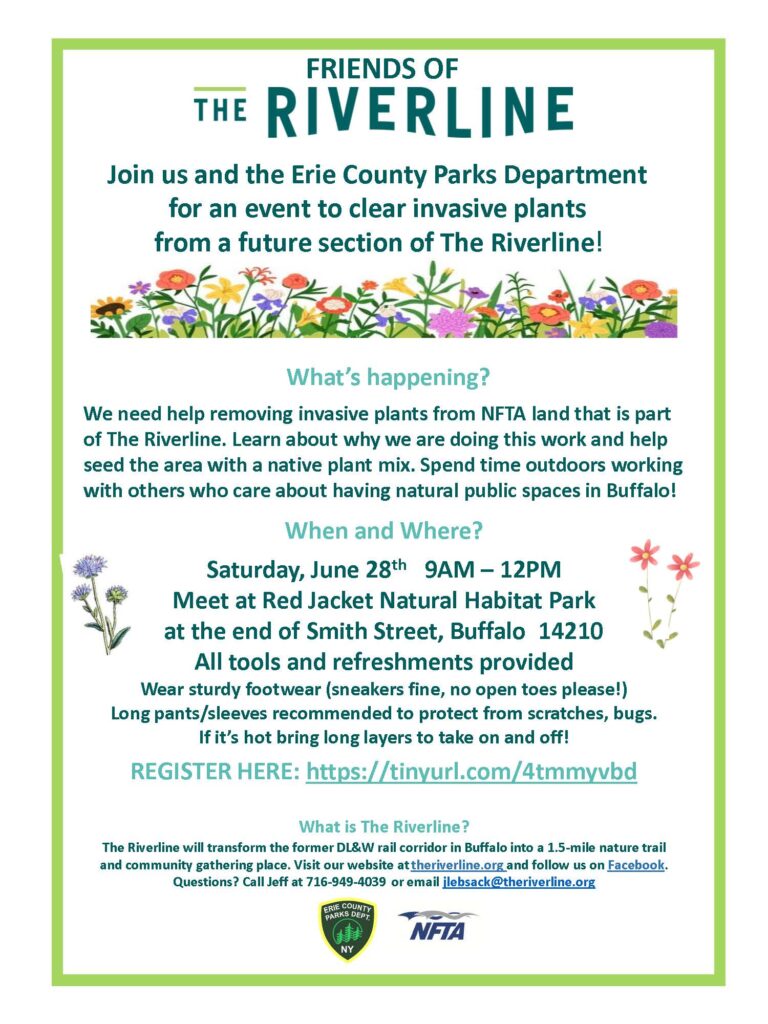 Join Erie County Parks Department and the Friends of the Riverline on Saturday, June 28 to help remove invasive plant species at Red Jacket Natural Habitat Park.
