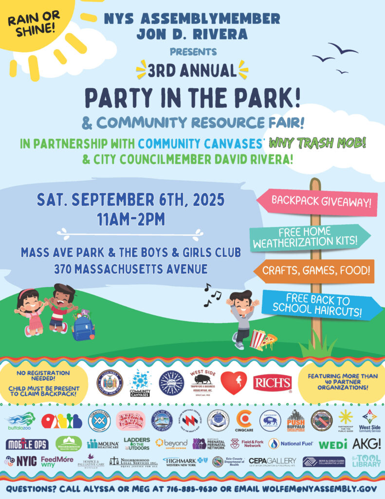 This is hosted by Assemblymember Jon Rivera, Councilmember David Rivera & Community Canvases’ WNY Trashmob.
