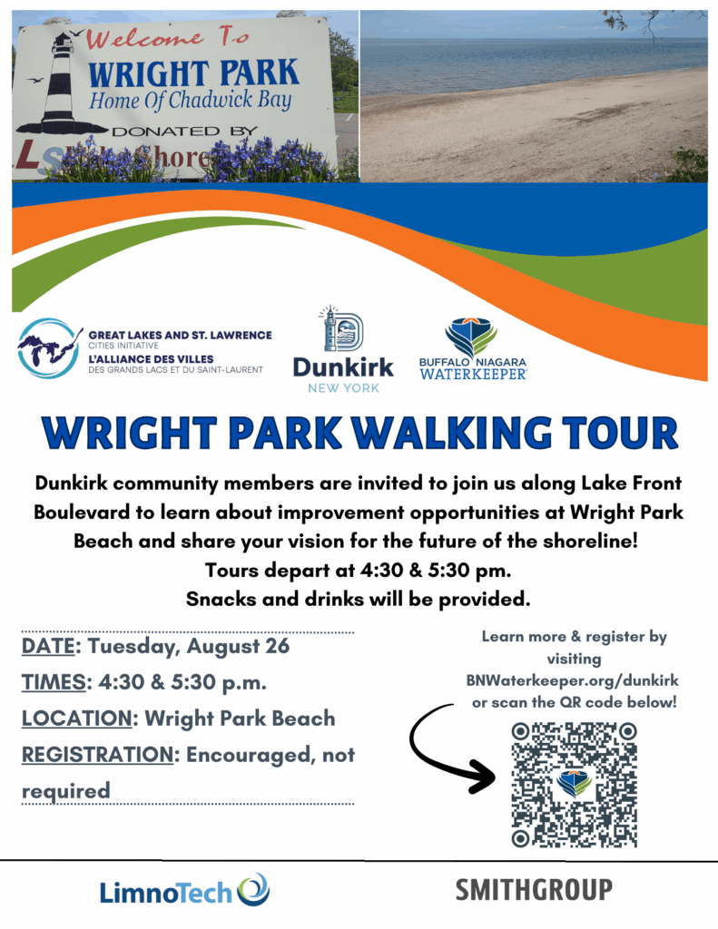 Dunkirk community members are invited to join us along Lake Front Boulevard on Aug. 26 to learn about improvement opportunities at Wright Park Beach and share your vision for the future of the shoreline!
