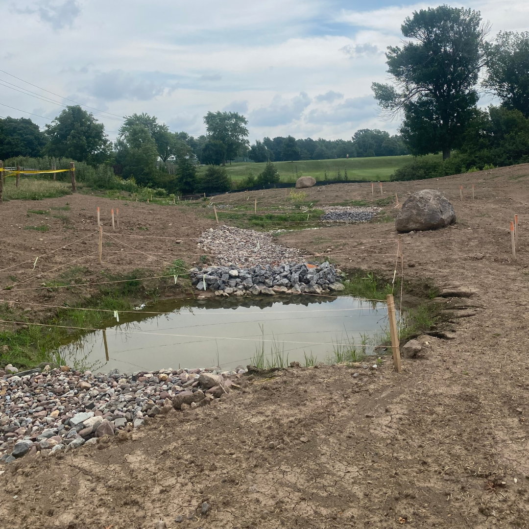 Through this project, the two stormwater pipes that were flowing directly into the lake were cut back and large catch basins were installed as a first step in filtration. Once stormwater flows into the catch basin it is then directed through two new wetland areas to capture and infiltrate over 2 million gallons of stormwater runoff annually.
